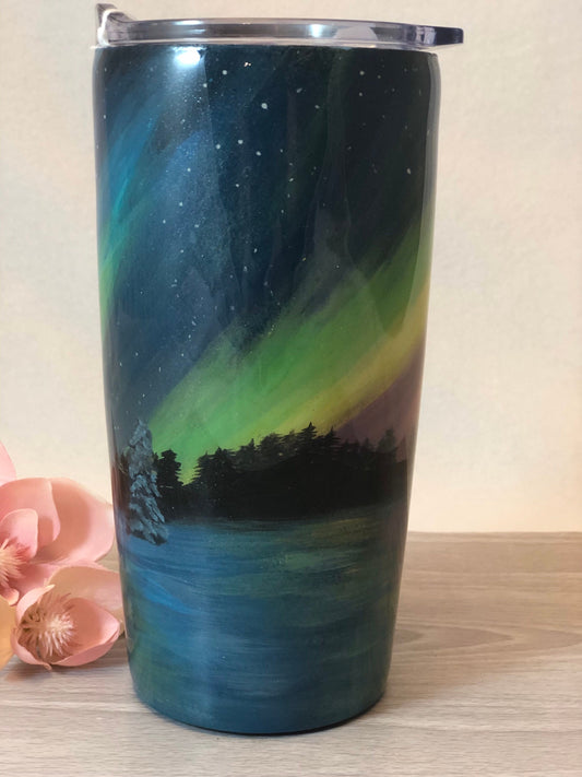 Hand Painted Northern Lights Aurora Borealis 20 oz Winter Tumbler