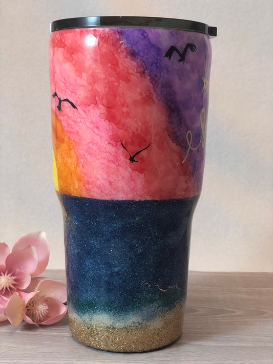 Salty Vibes Alcohol Ink Beach Sunset Gift Gift For Her Birthday Gift Beach Decor